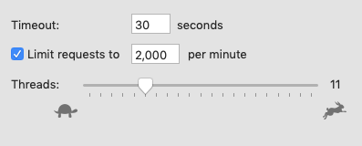 This slider sets the number of requests that Integrity can make at once. Using more threads may crawl your site faster, but it will use more of your computer's resources and your internet bandwidth. More importantly, it'll hit your website harder.
