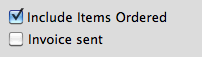 If the Items Ordered table (see Items Ordered) is to be printed on the invoice, then tick the Include Items Ordered checkbox: